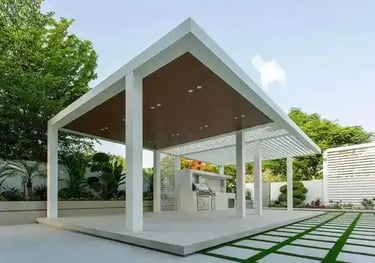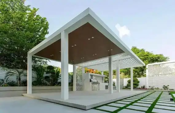 تدمج المساحات الخارجية بالخيمة أو البرجولا بانسيابية.