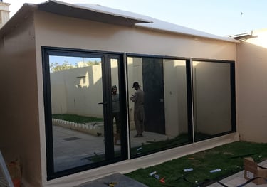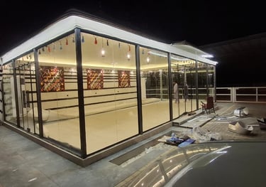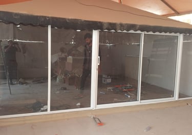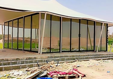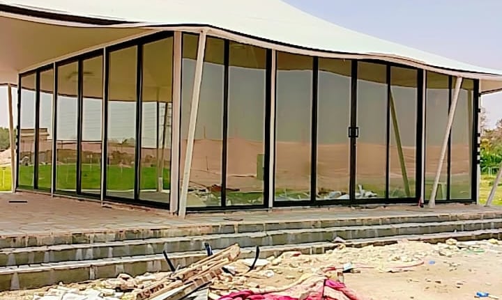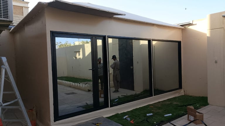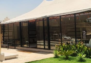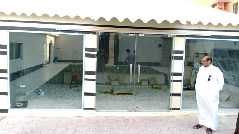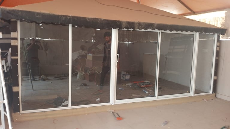 📜 نوفر أبواب ألمنيوم وزجاج عالية الجودة تُستخدم لربط المساحات الخارجية بالخيمة أو المجلس أو المشب. تصميماتها العصرية تسمح بدخول الضوء الطبيعي مع عزل حراري ممتاز لمناخ الرياض. متوفرة بأشكال سحب (سلايدينغ) أو فتح تقليدي، مع إمكانية دمجها مع واجهات خيام أو استراحات مغلقة.