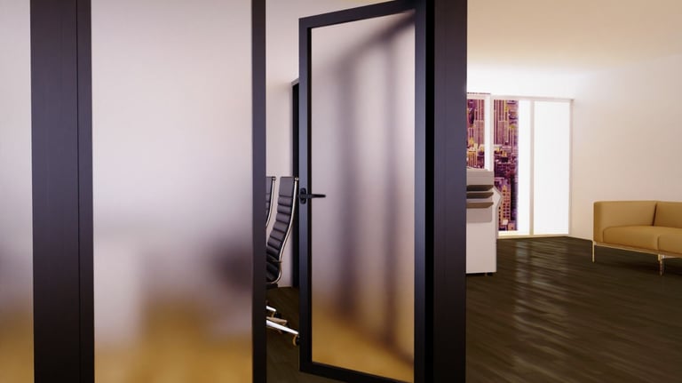 ✅ باب بزجاج عاكس أو ضبابي للمجالس الريفية