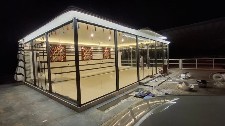 مثالية للخيم المغلقة أو المجالس الداخلية بواجهة حديثة.