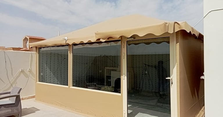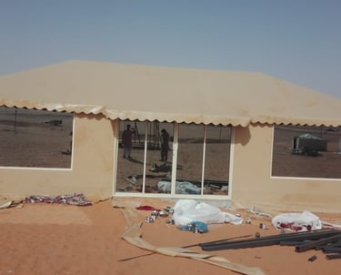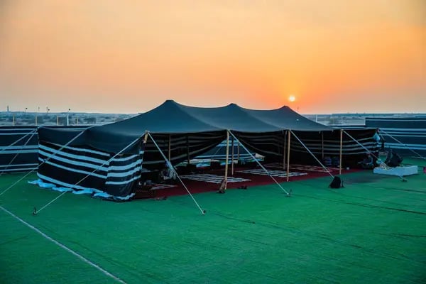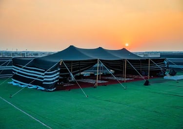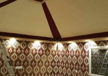 📜 خيام ملكية مصممة بأعلى مستويات الفخامة والراحة، تجمع بين الطابع العربي التقليدي واللمسات الحديثة. مثالية لفلل الرياض، الاستراحات، والمناسبات الخاصة. نقدم خيارات متعددة تشمل العزل الحراري، التكييف، الإضاءة التراثية، والتصميم الداخلي الفاخر لضمان تجربة ملكية في كل مناسبة.