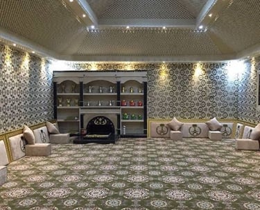 📜 التصميم الداخلي مستوحى من التراث النجدي، مع لمسات ملكية فخمة وألوان تعكس الأصالة العربية.
