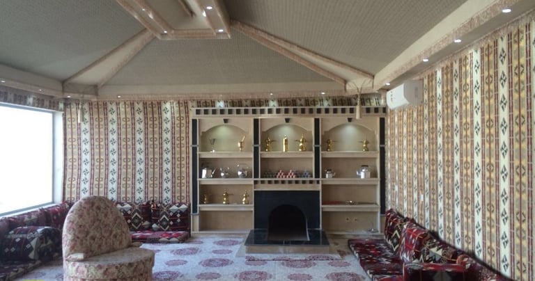 تصميم داخلي تراثي ملكي بخيوط السدو والفرش العربي