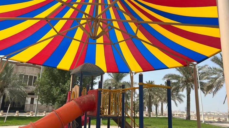 📜 نقدم مظلات عالية الجودة للمدارس ورياض الأطفال وساحات اللعب، مصممة خصيصًا لتحمل حرارة الرياض وتوفير الحماية من الشمس طوال اليوم الدراسي. نستخدم أقمشة PVC أو HDPE بخصائص مقاومة للأشعة فوق البنفسجية، مع هياكل آمنة لا تشكل خطراً على الأطفال. مثالية للملاعب، المداخل، مواقف الباصات، والممرات.